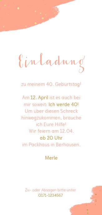 Einladung Zum 40 Geburtstag Mit Pinselstrich Kaartje2go